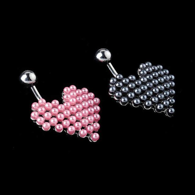ハート型に小さなパールを並べた可愛いへそピアス。ワイドなフォルムと上品なデザインがとっても可愛いヘソピアスです。チャームタイプが苦手な人にオススメの真珠のへそピアス。耳に付けてもラブリーなボディピアス。