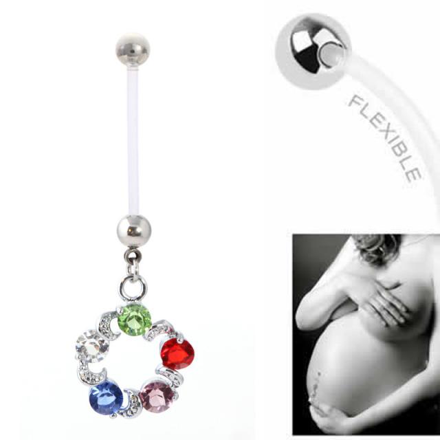 妊婦用マタニティ用へそピアス(ジルコニアリース) 14ゲージ 14G ジュエル ラインストーン クリスタル 臍ピアス ヘソピアス ボディピアス テフロン 内径 長い 短い 出産祝い 妊娠 マタニティママ 赤ちゃん ベビー プレゼント ギフト 柔らかい ヘソピ ネイブル