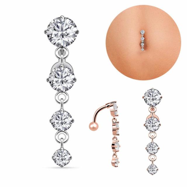 大きなの異なるキュービックジルコニアをへそピアスの上から4個セットしたトップダウンタイプのボディピアス。