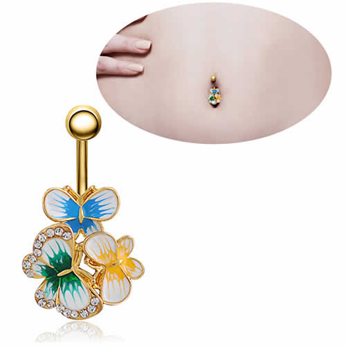 カラフルな3匹のチョウチョウをデザインしたポップなへそピアス。素敵な色合いが蝶々のデザインにマッチした女の子に人気のバタフライボディピアス。耳に付けてもおへそに付けても存在感をアピールできるへそピアスです。プレゼントにもおすすめ!