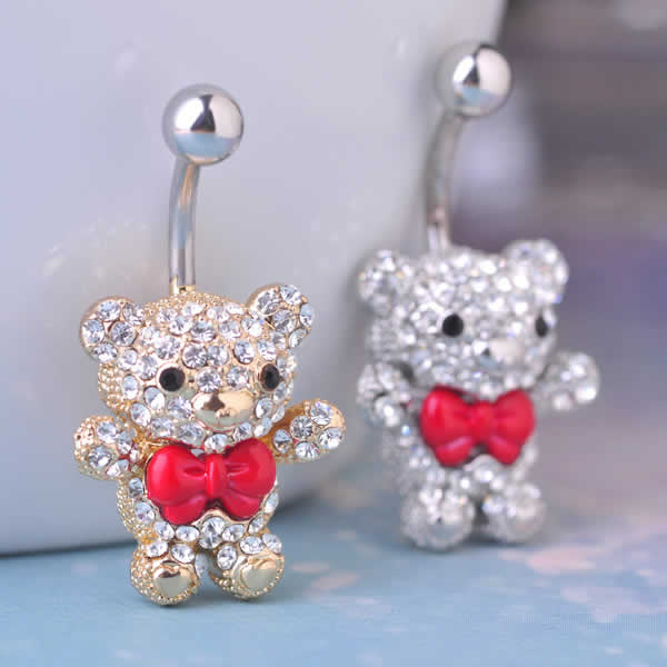 大きな赤いリボンが可愛いキラキラのクマのへそピアス。高級感もあってとってもかわいいへそピアスはプレゼントにもおすすめ。おへそのピアスとしてだけでなく耳に付けてもかわいい。プレゼントにも最適です。