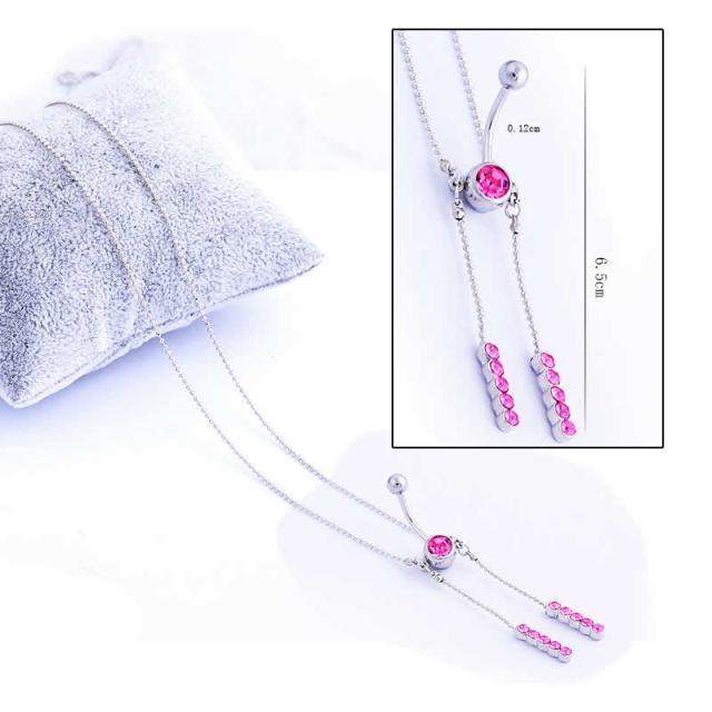 [ 14G へそピアス 付き ボディチェーン ] ジョアンナ ベリーチェーン 14ゲージ ビジュー クリスタル ビキニ 水着 鎖 ウエストチェーン 臍ピアス ヘソピアスベリーダンス レディース ネイブル シルバーチェーン チェーンベルト ウエストジュエリー ラインストーン ピンク 5個