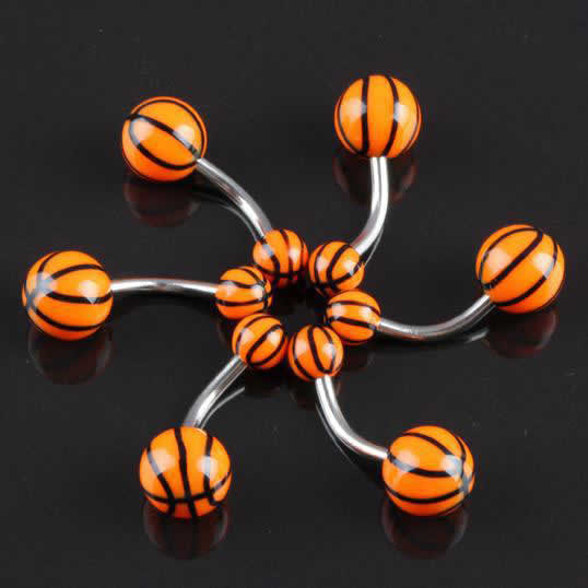 バスケットへそピアス 14G 14ゲージ ヘソピアス 臍ピアス メンズ レディース ヘソピ ネイブル ボディピアス サージカルステンレス316L 低アレルギー アクリル バスケットボール プラスチック おもしろ 面白い スポーツ 個性 バナナバーベル カーブバーベル