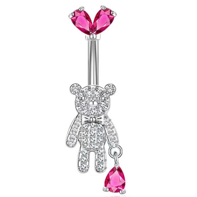 ピンク可愛いハートのキャッチにキラキラのヌイグルミのような熊が存在感をアピールしてくれるヘソピアス。
