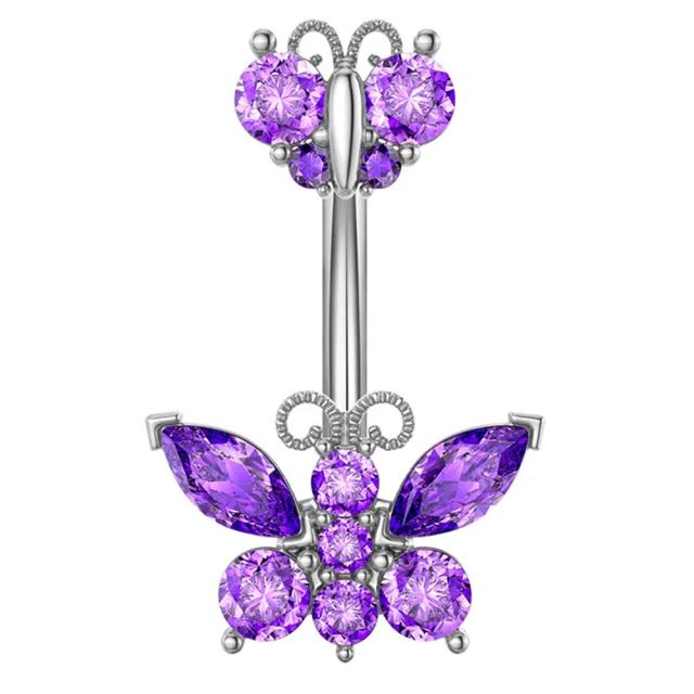[14G カーブバーベル ボディピアス] ダブルパープルバタフライへそピアス14ゲージ ヘソピアス 臍ピアス メンズ レディース ボディーピアス サージカルステンレス316L チョウチョウ 蝶々 2匹 パープル 紫 上下 2個 おしゃれ 大人 可愛い 耳 イヤーロブ