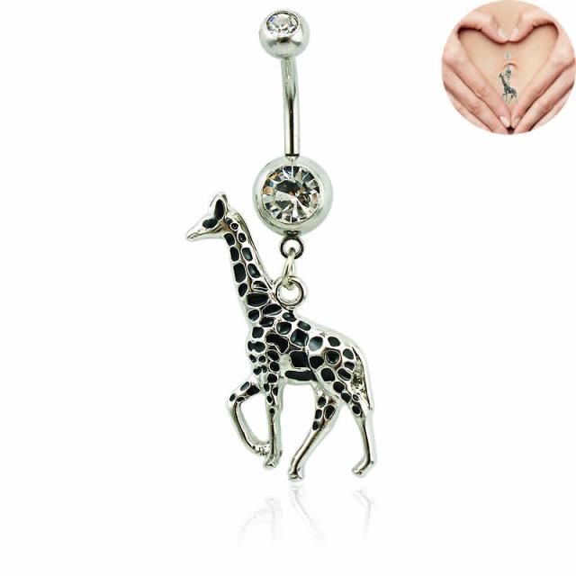 キリンチャームへそピアス 14G 14ゲージ ヘソピアス 臍ピアス メンズ レディース ヘソピ ネイブル ボディピアス サージカルステンレス316L 低アレルギー ジルコニア クリスタル ラインストーン バナナバーベル ぶら下がり 揺れる チャーム きりん アニマル 動物 おもしろ