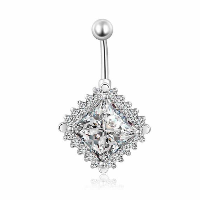 スクエアジルコンネイベルリング 14G 14ゲージ 四角形 高級 ヘソピアス 臍ピアス メンズ レディース ヘソピ ネイブル ボディピアス サージカルステンレス316L 低アレルギー ジルコニア クリスタル ラインストーン バナナバーベル カーブバーベル