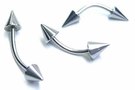 女性にも人気のコーンタイプの小さなカーブバーベルです。ゲージサイズがちいさいボディピアスはファーストピアスにもオススメのアクセサリーです。眉ピアス(アイブロー)や軟骨にオススメのジュエリー。