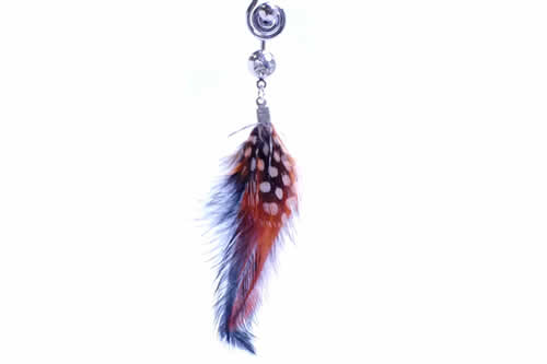 カラフルな鳥の羽根のチャームが揺れるヘソピアス。色鮮やかな羽は本物の鳥の羽根を染色して作られているので、ヒラヒラ感も綺麗。へそのピアスとしてだけじゃなく、耳に着けても綺麗。カラーバリエーションもたくさんあるので、スタイルに合ったものが選べる。装着するスタイルで、ネイティブ系やボヘミアンにも変身できるフェザーヘソピアス。プレゼントにもお奨め!
