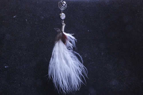 カラフルな鳥の羽根のチャームが揺れるヘソピアス。色鮮やかな羽は本物の鳥の羽根を染色して作られているので、ヒラヒラ感も綺麗。へそのピアスとしてだけじゃなく、耳に着けても綺麗。カラーバリエーションもたくさんあるので、スタイルに合ったものが選べる。装着するスタイルで、ネイティブ系やボヘミアンにも変身できるフェザーヘソピアス。プレゼントにもお奨め!