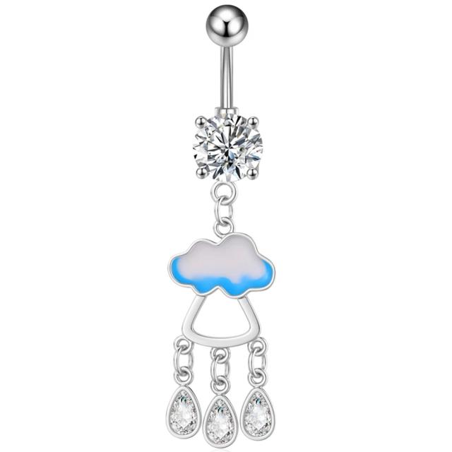 [14G ヘソピアス ボディピアス] レイニーデー へそピアス 1個販売 14ゲージ 臍ピアス メンズ レディース ボディーピアス サージカルステンレス316L 男性 女性 プレゼント ギフト 雨 梅雨 雲 涙 滴 ティアドロップ キュービックジルコニア ジュエル ストーン 石