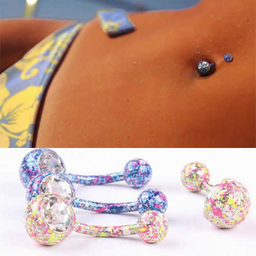 鮮やかなペインティングされたアーティスティックなへそピアス。リゾート感をかもし出すへそピアス。ベーシックなフォルムなので、おヘソのピアスとしてだけでなく耳にもOK.
