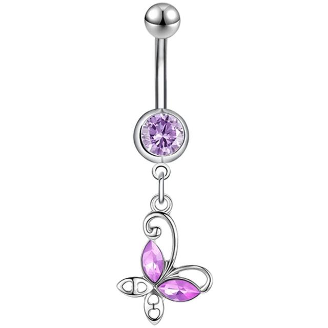 [14G ボディピアス ヘソピアス] パープルバタフライチャーム へそピアス 14ゲージ ボディーピアス 臍ピアス メンズ レディース サージカルステンレス316L 揺れる ライトアメジスト 紫色 蝶 チョウ ジルコニア ジュエル ストーン 石付き プレゼント ギフト キラキラ