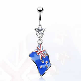 国旗へそピアス( ニュージーランド ) 14G 14ゲージ 揺れる ジルコニア クリスタル ラインストーン ヘソピアス 臍ピアス ボディピアス サージカルステンレス316L ネイブル ボディーピアス メンズ レディース へそピ バナナバーベル フラッグ 旗 星 スター