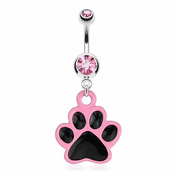 ワンにゃんヘソピアス 14G 14ゲージ ピンク色 肉球 猫 ネコ 犬 イヌ アニマル 動物 ジルコニア ラインストーン ヘソピアス 臍ピアス ボディピアス316L サージカルステンレス ネイブル ボディーピアス メンズ レディース へそピ バナナバーベル ヘソピ カーブバーベル