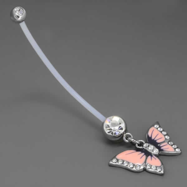 マタニティ用へそピアス(バタフライ) 14ゲージ 14G へそぴあす 臍ピアス ヘソピアス ボディピアス テフロン 内径が長い 短い 出産祝い 妊娠 ホールケア ママ 赤ちゃん ベビー プレゼント ギフト 柔らかい ヘソピ へそぴ ネイブル 妊婦用 チョウチョウ 蝶 シャフト