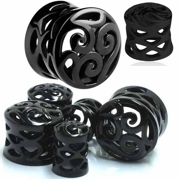 ブラックラティスプラグ 風神 0ゲージ 0G 00ゲージ 00G 12.0mm 12mm 14.0mm 14mm 16.0mm 16mm ブラック ボディピアス サージカルステンレス316L 黒色 透かし 低アレルギー メンズ レディース ブラックチタンコート ダブルフレア キャッチなし 空洞 12ミリ 14ミリ 16ミリ