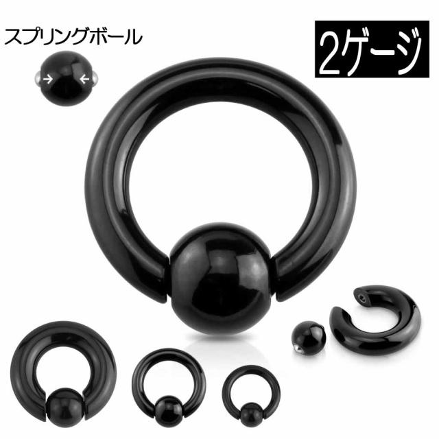 バネタイプ [ 2G ] ブラックスプリングビーズリング 2ゲージ 黒色 バネ式のボールだから取り外し簡単 ボディピアス サージカルステンレス316L 定番 メンズ レディース リング型 プレーン シンプル 内径サイズ 大きい 小さい キャプティブビーズリング 初心者でも安心