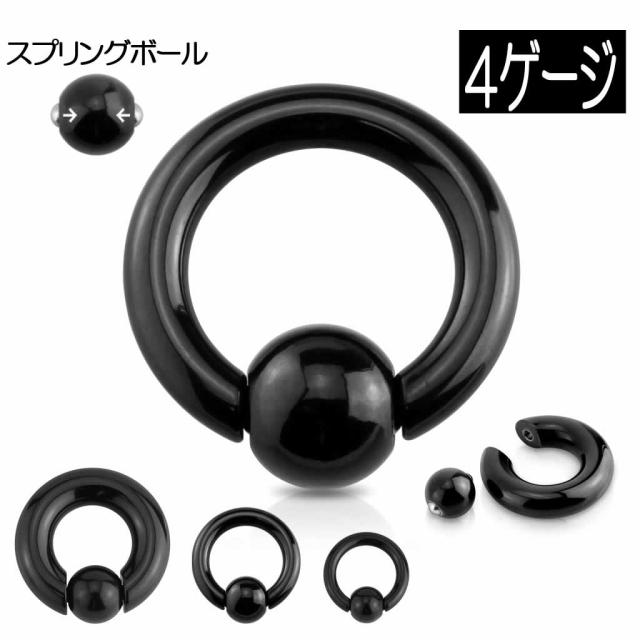 バネタイプ [ 4G ] ブラックスプリングビーズリング 4ゲージ 黒色 バネ式のボールだから取り外し簡単 ボディピアス サージカルステンレス316L 定番 メンズ レディース リング型 プレーン シンプル 内径サイズ 大きい 小さい キャプティブビーズリング 初心者でも安心
