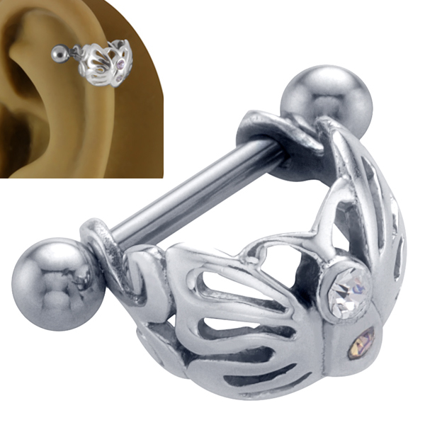 シルバー925製の小振りな透かしの蝶がセクシーに存在感を発揮してくれるヘリックスピアス。まるでイヤーカフのような洗練された見た目と高級感のあるジルコニアがアピール度満点の軟骨ボディピアス。見える部分は高級感のあるシルバー925で身体に装着する部分は低アレルギーのサージカルステンレスなので、装飾と安心のどちらも完璧なボディーピアスです。ヘリックスのピアスとしてだけでなく、サイズが合えば耳たぶやニップルなど色々な場所に使える上級アクセサリー。高級感たっぷりのボディピアスはプレゼントにも最適。通販だからすぐ届くのもうれしい。男女を問わないユニセックスなヘリックスピアスは、デザインに関係なくペアでも愛用できる。