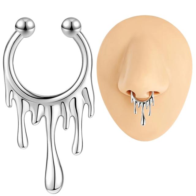 メルトダウン セプタム ノンホールピアス 1個販売 シルバー 溶ける 流れ落ちる フェイクリングピアス フープピアス風 鼻ピアス ノーズクリップ 耳 軟骨イヤーカフ ヘリックス メンズ レディース イヤリング プレゼント 個性的 話題 流行 開けない 真鍮 銀色 シルバー