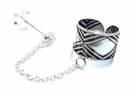 ワイドなボディにひし形をデザインした不思議な魅力を感じさせるチェーンピアス付イヤーカフ。