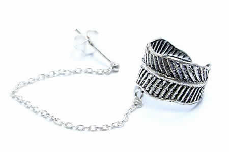 鷲の羽根をモチーフにしたイヤーカフ付ピアス。長めのチェーンが存在感を発揮してくれるイヤーカフ。
