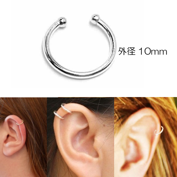 シンプル イヤリング 10mmサイズ 1個販売 ノンホールピアス あけない フェイク鼻ピアス セプタム ノーズクリップ 耳たぶ 軟骨 シルバー925 イヤーカフ ヘリックス イヤリング はさむ メンズ レディース イヤークリップ 開けない ノーズリング トラガス プレーン 普通サイズ