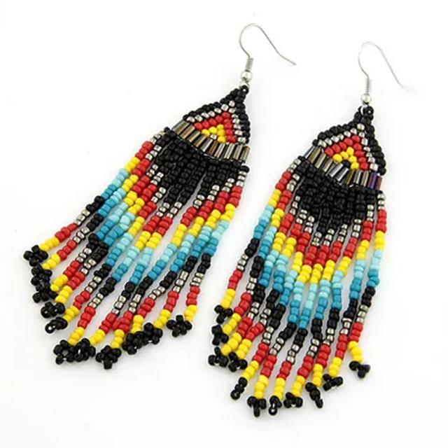 カラフルビーズボヘミアンファッションピアス 1ペア 20G 20ゲージ 20g メンズ レディース ジェンダーレス 手作り フックピアス インディアンジュエリー 大きい 長い プレゼント ギフト 男性 女性 友人 友達 彼氏 彼女 揺れる チャーム おしゃれ 可愛い 人気 黒色 ブラック
