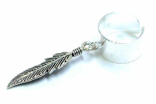 インディアンジュエリーの中でも人気の鷲の羽根(イーグルフェザー)のチャームが揺れるイヤーカフです。イヤーカフをシンプルにすることで、フェザーに注目させる作戦!幅広いスタイルにマッチし、ボディピアスやシルバーピアスとの相性もいいイヤーカフです。男女を問わず装着できるので、ペアアクセサリーにもオススメ!シルバー925製のイヤーカフは高級感もあり、アレルギーも安心。1つずつ手作りされたイヤーカフは、アナタのスタイルをワンランクアップさせてくれる。色々なシルバーアクセサリーやボディーピアスとの相性もバッチリなので、幅広いスタイルに合わせることが出来るイヤーカフです。耳に簡単に装着できるイヤーカフは、普段着感覚でおしゃれが楽しめるアクセサリーです。もちろん、耳以外に使ってもO.K.指のサイズの小さな子供のベビーリングや足の指輪トゥリングにも使えるよ。【スペック】イヤーカフの幅:約6.5mmチャームの大きさ:約22mm x 6.0mm【素材】シルバー925(スターリングシルバー)【備考】・表示は1個の価格です。・ハンドメイドの為多少サイズは異なります。