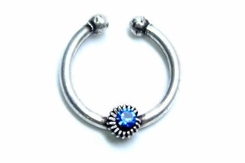 クロシェイヤリング(サファイア) 1個販売 フェイク鼻ピアス セプタム ノーズクリップ 耳たぶ 軟骨 シルバー925 イヤーカフ ヘリックス リングピアス フープピアス はさむ メンズ レディース 痛くない ノーズリング トラガス ノンホールピアス ノンホールイヤリング