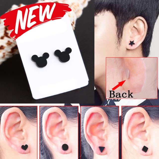 ブラックマグネットピアス/1個販売 磁石 マグピ メンズ レディース マグネットピアス フェイクピアス 星型 三角形 丸型 ハート 四角形 スクエア ベアー 黒色 イヤリング 耳 軟骨 穴あけ不要 ピアスできない人に ノンホールピアス ノンホールイヤリング 開けない ノーホール