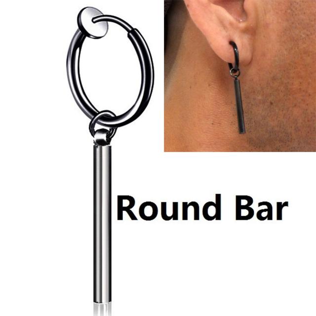 黒色のメッキをした太い12ゲージサイズのシャフトに大きめの内径サイズのスプリングタイプのノンホールピアスにシンプルなスティック状の棒のチャームスタイリッシュなメンズ系イヤーカフ。 もちろんピアスを開けなくても装着できるので、大人から子供まで幅広く愛用でき、映画や舞台の衣装にもおすすめのイヤリングです。 男性の方におすすめですが、もちろん女性の方も装着できます。成人式や結婚式でも使えるおしゃれで高級感のあるボディピアス型イヤリング。