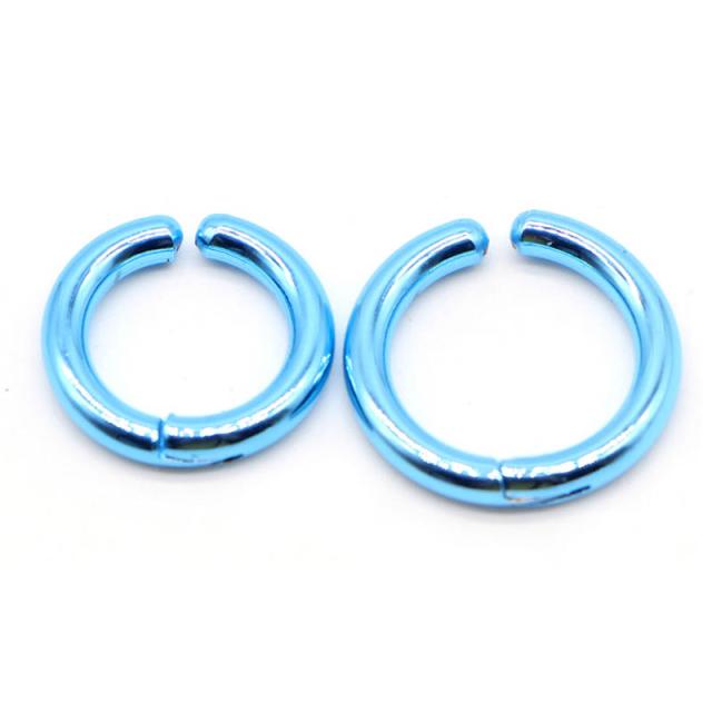 [開けないボディピアス風] ライトブルー 10G セグメント風ノンホールピアス ボディーピアス風 イヤリング 1個販売 イヤーカフ フェイクピアス リングピアス風 ステンレスピアス風 10ゲージ 太め メンズ レディース 彼氏 結婚式 サージカルステンレス316L 韓流 水色 綺麗
