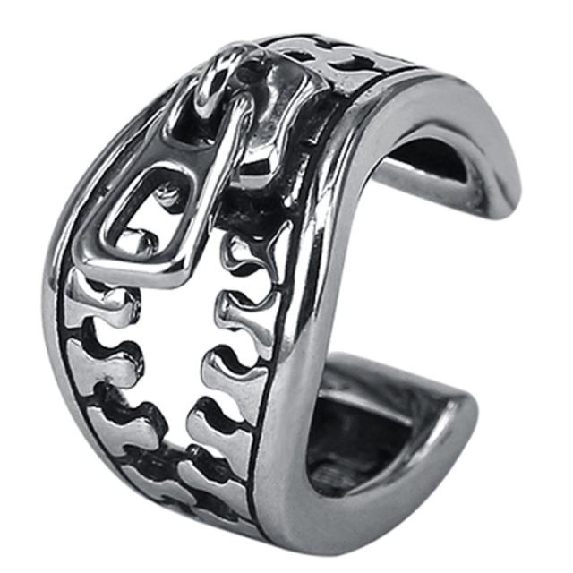 重厚感のあるステンレスイヤーカフは特に男性に人気。男の人の耳にも映えるゴツメのデザイン。スタイルに負けない存在感のあるイヤーカフです。