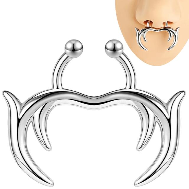 プロフェッサー セプタム ノンホールピアス 1個販売 髭 ひげ 紳士 ジェントルマン 口ひげ シルバー フェイクリングピアス フープピアス風 鼻ピアス ノーズクリップ 耳 軟骨イヤーカフ ヘリックス メンズ レディース イヤリング プレゼント 個性 話題 流行 開けない 真鍮 銀色