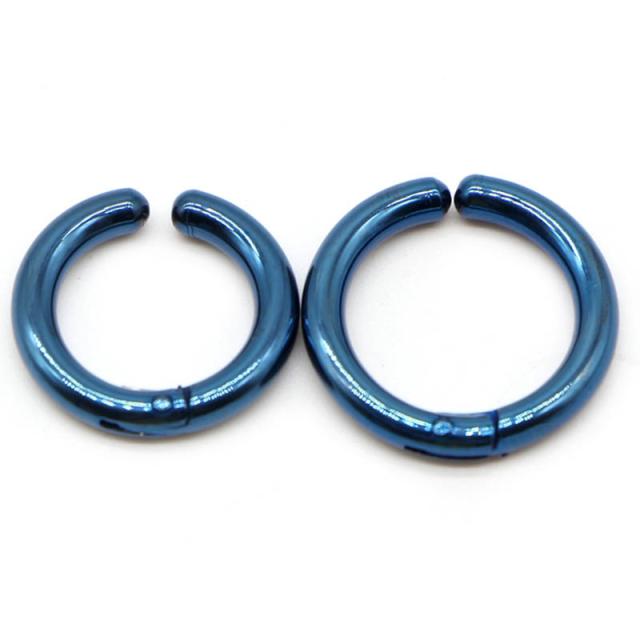 [開けないボディピアス風] ブルー 10G セグメント風ノンホールピアス ボディーピアス風 イヤリング 1個販売 イヤーカフ フェイクピアス リングピアス風 ステンレスピアス風 10ゲージ 太め メンズ レディース 彼氏 結婚式 サージカルステンレス316L 韓流 青色 綺麗
