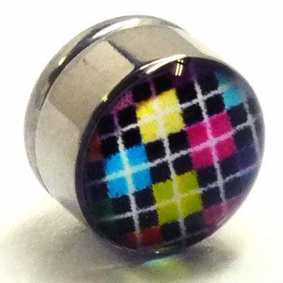 ステンレスマグネットピアス(アーガイル)チェック 磁石 イヤリング 耳 軟骨 穴あけ不要 ピアスできない人に サージカルステンレス マグピ メンズ レディース フェイクピアス まるでボディピアスのプラグのよう ノンホールピアス ノンホールイヤリング 開けない ノーホール