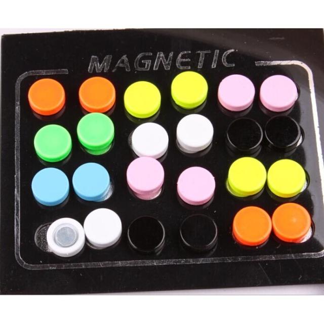 カラフルなネオンカラーのマグネットピアス。磁石の引っ付く力で簡単に装着できるフェイクピアス。ピアスをしていなくてもワンタッチで装着でき、イヤリングやイヤーカフみたいにおしゃれを楽しめるマグネットピアス。カラーや大きさも選べる。