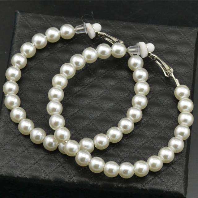 パールリングイヤリング(1ペア) 両耳 真珠 イミテーション 穴あけなし 開けない レディース フェイクピアス リングピアス フープピアス風 はさむ 挟む 結婚式 発表会 パーティ 入学式 二次会 ウエディングジュエリー ノンホールピアス 揺れる 女子人気 大きい 55mm おしゃれ