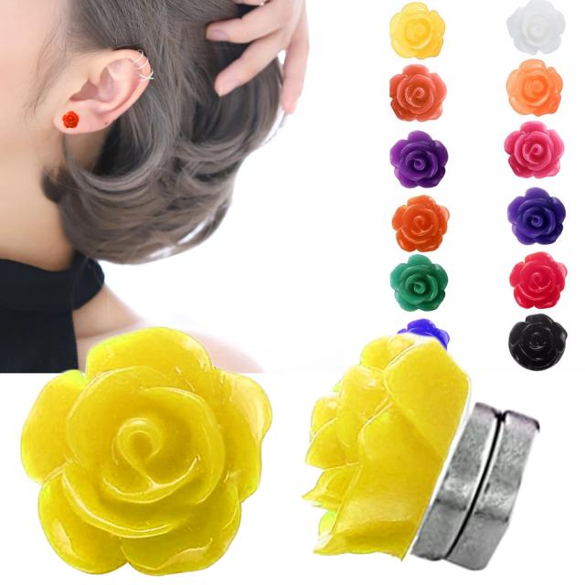 カラーローズマグネットピアス 1個販売 磁石 マグピ メンズ レディース フェイクピアス 薔薇 バラ 花 フラワー イヤリング 耳 軟骨 穴あけ不要 ノンホールピアス 赤 ピンク ブルー 青色 ホワイト 白色 イエロー 黄色 グレー ブラウン ヘリックス プレゼント 大人 子供 10mm