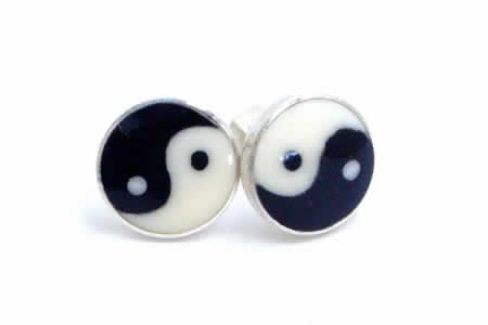 白と黒の色のコントラストがきれいな対極図を描いたかなり大きいシルバーピアスです。絶対的な存在感を放つアクセサリー!サーファーブランドのタウン&カントリーのロゴマークにも使われている陰陽マークは、幅広いそうに愛用されているシルバーアクセサリーです。コントラストのきかせたデザインがクールなストーンピアス。