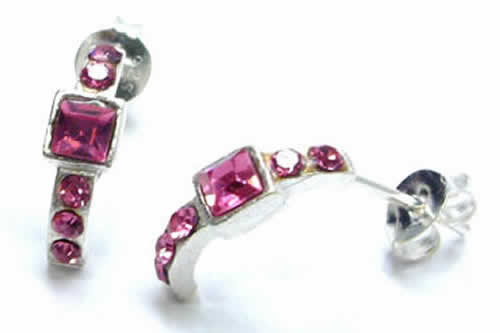 半円型の個性的なシルバーの台座に、スクエアカットされたキュービックジルコニアが眩しく輝く個性的なシルバーピアスはグリーンピアッシングオリジナルアクセ!