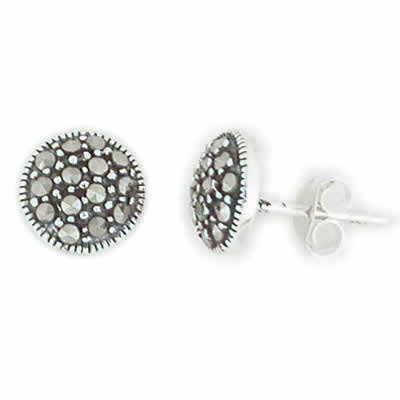ドーム型のシルバーの台座に高級感のあるマーカサイトをセットしたシルバー925ピアス。ギミックなデザインがおしゃれ心をくすぐる。高級感のアルシルバー925ピアスは大人女子にも大人男子にもオススメです。プレゼントにも最適!