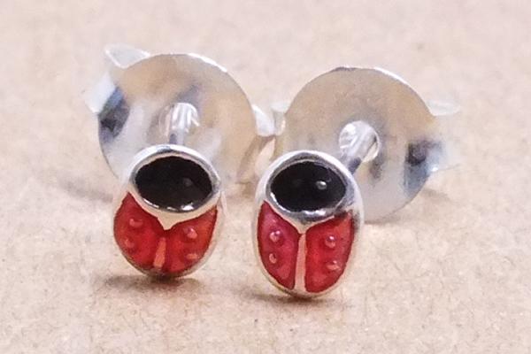 オーバルてんとう虫スタッドピアス/1ペア販売 両耳 天道虫 昆虫 レディバグ テントウムシ シルバー925 スターリングシルバー 高級 オリジナル シルバーピアス メンズ レディース 耳 軟骨 20G 20ゲージ おもしろ
