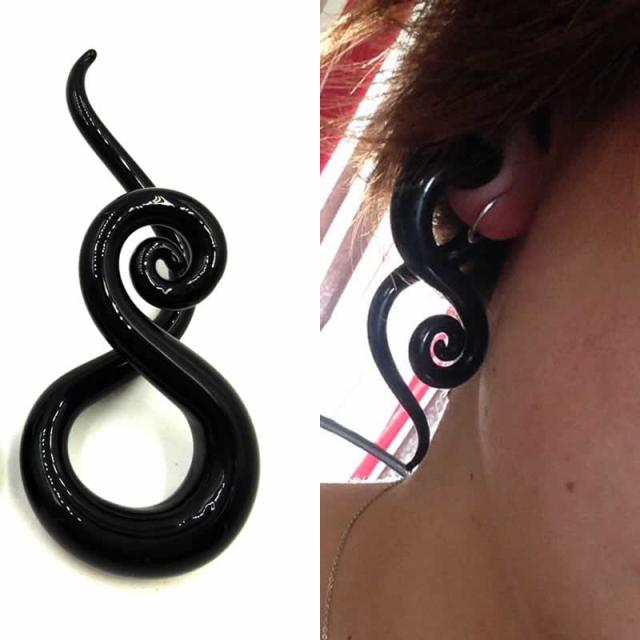 ブラックパイレックスガラスツイスト(1ペア) 両耳 4ゲージ 4G 2ゲージ 2G 0ゲージ 0G 00ゲージ 00G ガラス製 黒色 ボディピアス 金属アレルギーなし メンズ レディース 個性 スパイラル 拡張 インサーションテーパー おもしろ エキスパンダー 立体 3D ハンドメイド
