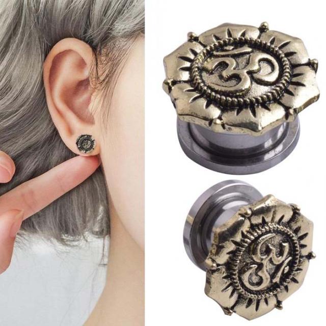 蓮華 梵字 トンネル 4G 4ゲージ 2G 2ゲージ 0G 0ゲージ 00G 00ゲージ 12.0mm 12mm 14.0mm 14mm 16.0mm 16mm ゴールド フラワー おもしろ ステンレス ボディピアス メンズ レディース ボディーピアス 耳 軟骨 ペア 埋め込み ネジタイプ プラグ 面白い ボヘミアン 花