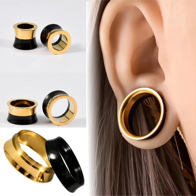 [0G 00G 12mm ボディピアス] ゴールドブラックダブルカラーフレア 1個販売 ネジ式 ダブルフレア ボディーピアス ネジタイプ 0ゲージ 00ゲージ 12.0mm 12ミリ サージカルステンレス316L ホールピアス メンズ レディース プレゼント 金色 黒色シルバー 螺子 つけやすい プラグ