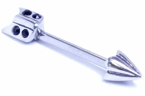 羽の部分にジュエルをセットした弓矢をデザインしたバーベル型ボディピアス。ダーツ好きの彼やアーチェリー部の彼女にプレゼントしたいボディピアスです。内径サイズも選べて両側ネジタイプなので、装着も簡単!シャフトはもちろん、ヘッド部分の素材も安心の医療用サージカルステンレスなのがうれしい。耳たぶや軟骨、ニップルなどいろいろな場所へのピアッシングに使えるボディピアスです。それぞれのパーツがネジ式なので、手持ちのネジタイプのボディピアスにパーツに組み替えても楽しめるダブルフェイスボディピアスです。