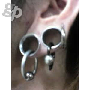 円柱型のパイプのボディピアスの両側をラッパのように広げたアクセサリーです。キャプティブビーズリングやサーキュラーバーベルをラージイヤーホールに通すホールトゥピアスの王道です。ダブルフレアーアイレット(ダブルフレアーイヤーレット)は、キャッチのないタイプなので見た目もすっきりとしているので、女性にもオススメのジュエリー。シルバーアクセサリーなどとの相性もよく、ストリートアクセサリーの定番になっています。